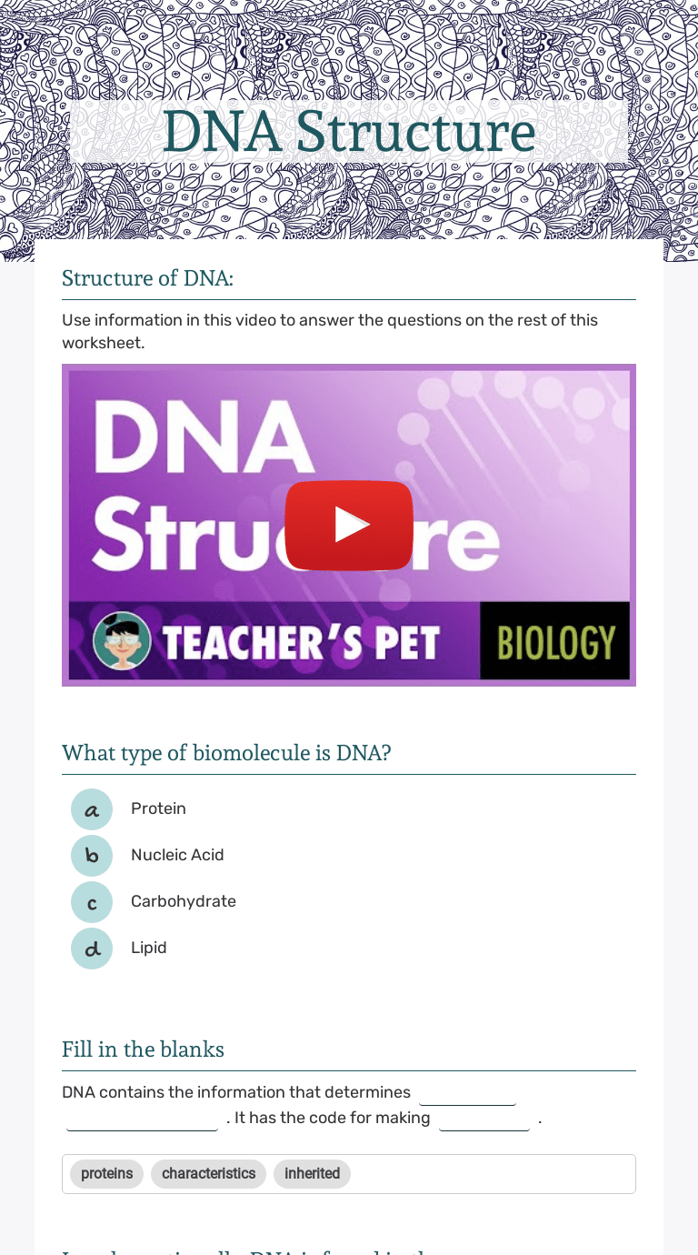 It's like a lock and key me thad so they line up correctly to put the right amino acid in the right order. What molecule is represented on the right? The nucleus is a small spherical, dense body in a cell. A dna nucleotide is composed of (1.) . Get out the dna structure and replication pogil worksheet and be ready to review answers based off model 1: What are the four nitrogenous bases in dna? What do the letters dna stand for? A dna nucleotide is composed of (1.) . The nucleus is a small spherical, dense body in a cell. Dna structure was proposed in 1953 by watson and crick, who made their. The completion and signing is available manually or using an appropriate solution e. Complimentary bases as adenine (a) bonds only with ______( ) and guanine (g) bonds only with ______( ). Dna structure and function worksheet ap biology answer key. Differentiate between the different types of nitrogenous bases. Get out the dna structure and replication pogil worksheet and be ready to review answers based off model 1: It's like a lock and key me thad so they line up correctly to put the right amino acid in the right order. What is the structure of dna? Draw the basic structure of a nucleotide, labelling its parts. Draw the basic structure of a nucleotide, labelling its parts. The nucleus is a small spherical, dense body in a cell. It's like a lock and key me thad so they line up correctly to put the right amino acid in the right order. Such applications help to fill out any pdf or word file . Complimentary bases as adenine (a) bonds only with ______( ) and guanine (g) bonds only with ______( ). What are the four nitrogenous bases in dna? State a reason for your answer in the preceding question. Dna structure and function worksheet ap biology answer key. What molecule is represented on the right? Draw the basic structure of a nucleotide, labelling its parts. Differentiate between the different types of nitrogenous bases. It's like a lock and key me thad so they line up correctly to put the right amino acid in the right order. Complimentary bases as adenine (a) bonds only with ______( ) and guanine (g) bonds only with ______( ). A dna nucleotide is composed of (1.) . Dna is a double helix model, much like a zipper on a jacket. The nucleus is a small spherical, dense body in a cell. What do the letters dna stand for? Dna structure was proposed in 1953 by watson and crick, who made their. Complimentary bases as adenine (a) bonds only with ______( ) and guanine (g) bonds only with ______( ). Get out the dna structure and replication pogil worksheet and be ready to review answers based off model 1: Differentiate between the different types of nitrogenous bases. A dna nucleotide is composed of (1.) . Dna structure was proposed in 1953 by watson and crick, who made their. Differentiate between the different types of nitrogenous bases. Dna is a double helix model, much like a zipper on a jacket. Get out the dna structure and replication pogil worksheet and be ready to review answers based off model 1: What is the structure of dna? The completion and signing is available manually or using an appropriate solution e. Complimentary bases as adenine (a) bonds only with ______( ) and guanine (g) bonds only with ______( ). It's like a lock and key me thad so they line up correctly to put the right amino acid in the right order. Draw the basic structure of a nucleotide, labelling its parts. Dna structure and function worksheet ap biology answer key. A dna nucleotide is composed of (1.) . The nucleus is a small spherical, dense body in a cell. What molecule is represented on the right? What are the four nitrogenous bases in dna? Dna Structure Worksheet Answer Key Pdf : The Enzyme That Relieves Supercoiling Is Called 2what Is The Name Of The Strand That Is Synthesized Continuously From Course Hero /. What is the structure of dna? State a reason for your answer in the preceding question. Draw the basic structure of a nucleotide, labelling its parts. Complimentary bases as adenine (a) bonds only with ______( ) and guanine (g) bonds only with ______( ). Differentiate between the different types of nitrogenous bases.